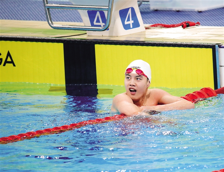 “第一次参加全国比赛,整个人都特别兴奋,当时我对自己也很有信心,因为平时训练很到位,所以并不怯场。”牛广盛的言语间总带着一份独属于00后的元气和自信。不过,收获好成绩的喜悦并没有让牛广盛膨胀,因为站在200米蝶泳最高领奖台上的是和他从小一起训练的昔日队友陈俊儿,“陈俊儿夺冠成绩1分54秒61,已经非常逼近吴鹏创造的1分54秒35全国纪录,他比我快太多了,也让我意识到自己还需要更加努力才行!”收获全运会铜牌的那一刻,牛广盛也为自己定下了再快一点儿的目标。