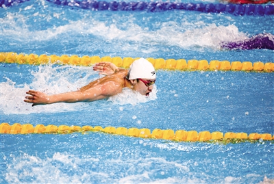 今年18岁的牛广盛,游泳已经13年了。身高1.8米的他身体条件在游泳运动员中并不突出,甚至显得有些单薄,但只要一入水,牛广盛便显示出强者风范,宽阔平坦的后肩背在水中有节奏地上下起伏,充满力量的上肢牵动身体高速前进,耐力优秀的他总能在后程带给人惊喜。