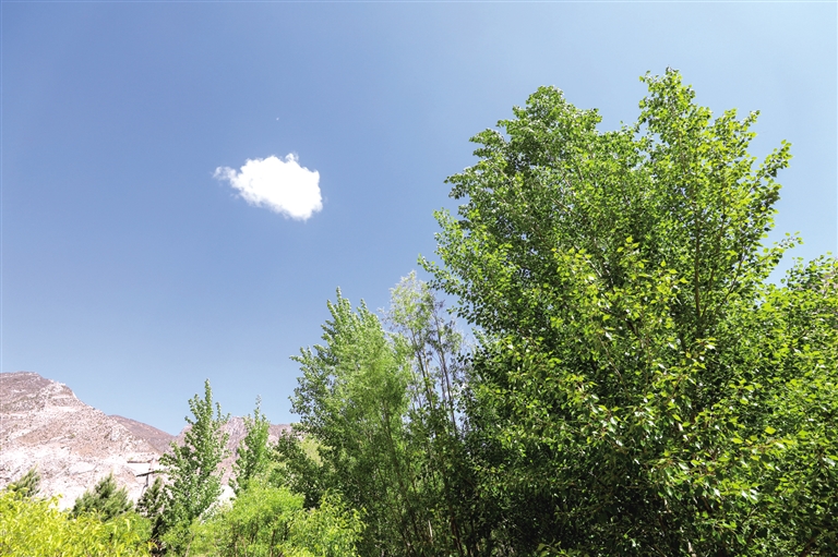 5月18日,记者来到大青山哈拉沁沟水泥厂旧采矿区,这里山花烂漫,丁香花散发着清香,山桃、杏树已经挂果。