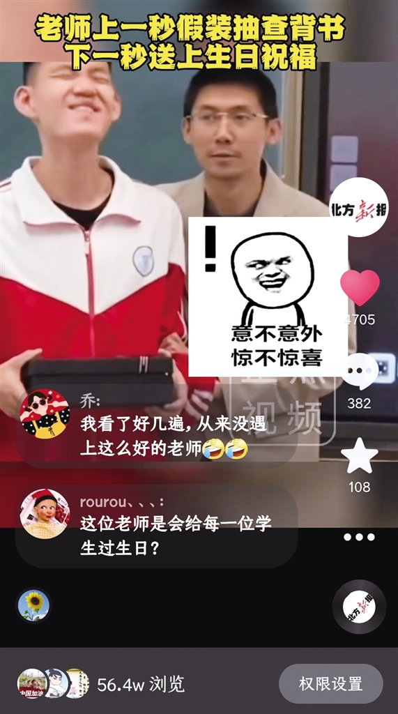 网友@素颜无痕:这个老师太棒了,真希望我儿子以后也能去当他的学生;网友@七月:会是很难忘的一个生日,够回忆一辈子了;网友@天真无鞋:这老师能处。就连呼和浩特市第一中学官方账号也出来调皮互动:牛老师真是又惊又喜啊。