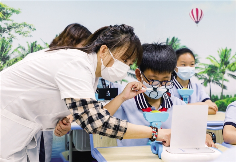5月31日,呼和浩特市近视防控协会专家对呼伦南路小学的学生进行视力筛查。据了解,6月6日是全国爱眼日。当日,该校举行了“守护‘睛’彩视界 点亮‘光’明未来”主题活动,旨在进一步增强学生的爱眼意识,养成良好的学习生活习惯,良好的阅读书写习惯,保持正确的读书、写字姿势,预防近视发生。