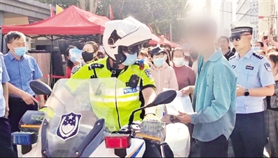 “交警叔叔,我走错考场了!”“赶紧戴上头盔上车,我送你去!”6月7日早,包头市第九中学考点门前,一名考生焦急地向交警求助:马上就要开考了,但是走错了考场,应该在包钢第五中学参加考试(如图)。昆区交管大队特勤中队民警邬亮确认正确考场后,骑上警用摩托车载着考生一路疾驰前往包钢五中考点。此时正是早高峰时段,为节约时间,大队民警通过喊话引导,为考生开辟绿色通道。这名考生情绪十分紧张,邬亮一路安抚他:“大家都在为你保驾护航,一定不会迟到,放轻松好好考,祝你金榜题名!”民警仅用3分钟就将考生平安送至考点,送达时距考试开始还有约20分钟。