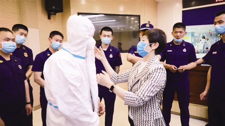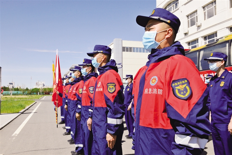 6月7日9时,锡林郭勒盟消防救援支队举行了出征仪式,由22名消防员组成的增援处置队在锡林郭勒盟消防救援支队集结,携带物资装备奔赴二连浩特市开展疫情防控工作。文/北方新报正北方网记者 张巧珍 摄影/杨东升