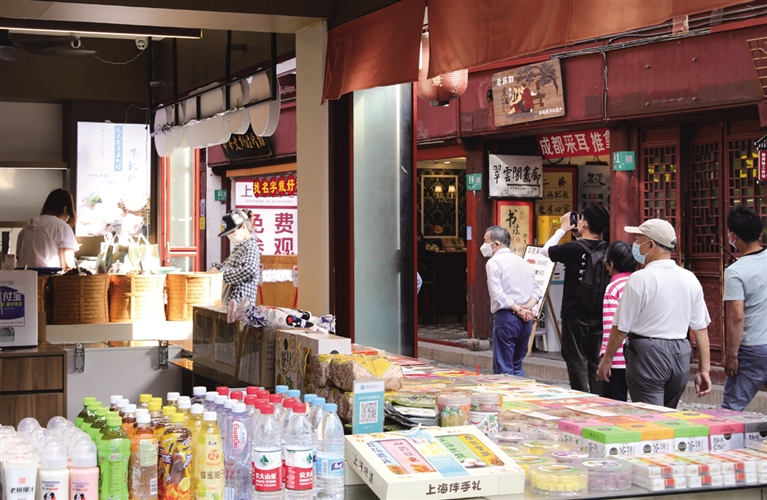 6月7日,游人在位于上海市闵行区的七宝古镇景区内游览。近日,上海市在做好疫情防控工作的同时全面推进复工复市,生产生活秩序逐步恢复。摄影/新华社记者 方 喆