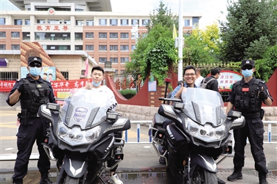骑警乌力吉快速反应,边安慰考生边给他戴上头盔,骑摩托车送考生回家取准考证。警笛开启,来回20多分钟的路程仅用了8分钟,确保考生顺利参加考试。