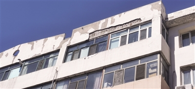 二楼住户孙女士告诉记者,最近一周17号楼连续3次外墙体脱落,这次最严重。当时她在家里突然听到轰隆一声巨响,好像房要塌了,跑出来一看,六楼楼顶的外墙体发生大面积脱落,大块的水泥墙体砸在地面和二楼的平台上。一些居民家平台上的铁架子被砸弯,花盆被砸碎,底店的门头牌子也砸掉了,停在楼下的一辆轿车被砸坏。孙女士说,如果没有二楼的平台挡着,天然气管道很可能会被砸断,要是砸到路人,后果更是不堪设想。希望有关部门能出面修缮,消除安全隐患。