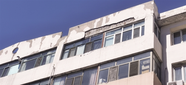 随后,记者采访了包头市东河区住房和城乡建设局公用事业股物业负责人王卫忠,他表示,矿机小区属于老旧小区,没有房屋维修基金,而且按照现行政策,老旧小区改造不涉及房屋主体。维修共用部位物业公司可以维修,或社区组织相关部门和单位维修,里外墙的挑檐属于共用部位,居民需要集资维修外墙体。