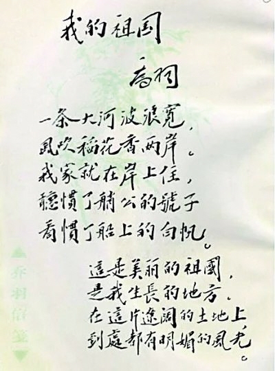 “一条大河波浪宽,风吹稻花香两岸,我家就在岸上住,听惯了艄公的号子,看惯了船上的白帆……”(《我的祖国》)
