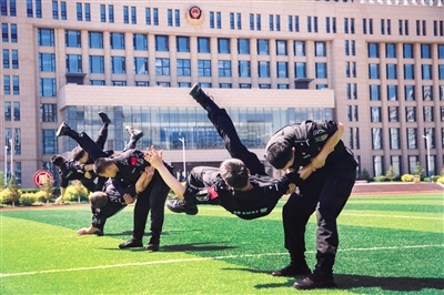 6月22日,特警练习徒手格斗基础技能。进入6月,呼和浩特铁路公安处特警支队开展了夏季实战大练兵,采取每周自行组织小练兵+每月集中考核的方式锤炼精兵。据呼和浩特铁路公安处特警支队支队长马继超介绍,练兵项目包括徒手格斗基础技能、徒手防卫与控制、警械具的使用技能、个人极端行为处置战术、巡逻盘查技巧等,通过有针对性的训练,达到“练为战”的目的,进一步提升队伍整体作战力。
