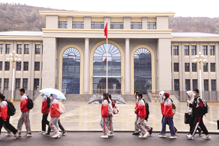 同一时空,甘肃省华池县南梁镇列宁学校新址,书声琅琅,身着统一校服的学生坐在现代化多媒体教室上课。一墙之隔的老校址依然保留着,几孔窑洞、几方旧桌,静静诉说岁月故事。