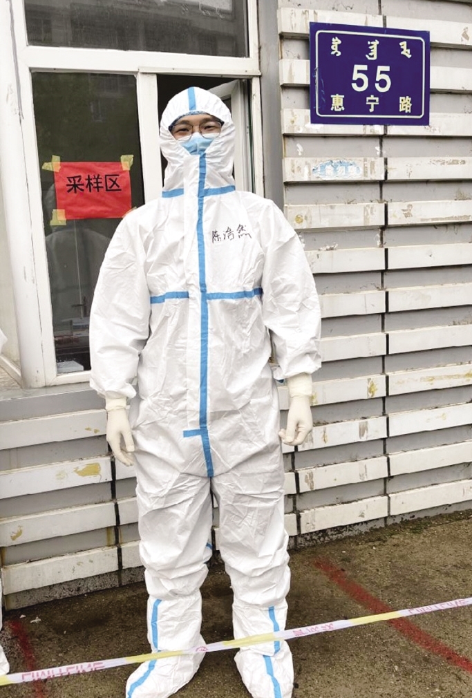 22岁的陈浩然是这场战疫中的一名志愿者。自赤峰市敖汉旗开展核酸检测以来,他化身“大白”,奔赴在疫情防控一线。他自豪地说:“能成为一名‘大白’真的很帅!”