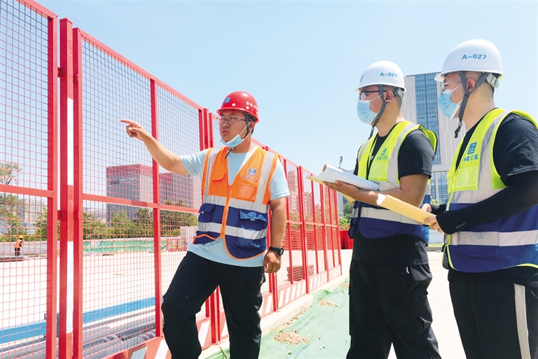 “在工地上,最重要的就是安全。每天要巡查,发现安全隐患要立即整改。看,这里是基坑,很容易发生土方坍塌,因此,要在基坑周围设置防护栏杆,起到安全防护作用。”霍博每到一处,便详细讲解工地上存在的消防、高空作业、基坑工程等等安全隐患、注意事项,以及如何做才能确保安全施工。