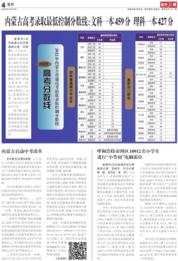 内蒙古高考录取最低控制分数线:文科一本459分 理科一本427分