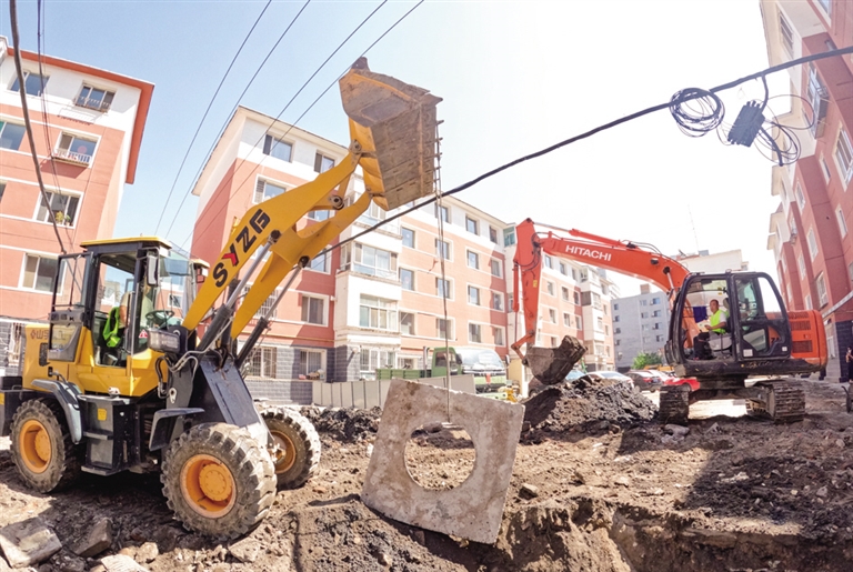 当日9时,记者来到万峰小区,工人师傅们正在紧张施工作业,裸露在外的土地用绿网遮盖,挖掘机、运输车辆正对小区升级改造。“在这里居住20多年,下水管道和电路经常有问题,一直盼着早点改造。现在,改造全面开始了,居民很高兴,希望通过改造让生活环境各方面能提高。”