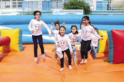 6月27日,儿童在加沙地带杰巴利耶难民营参加夏令营活动。联合国机构在加沙地带开办夏令营,通过开展各类游戏活动,帮助孩子们消除战争冲突带来的心理健康问题。(据新华社报道)