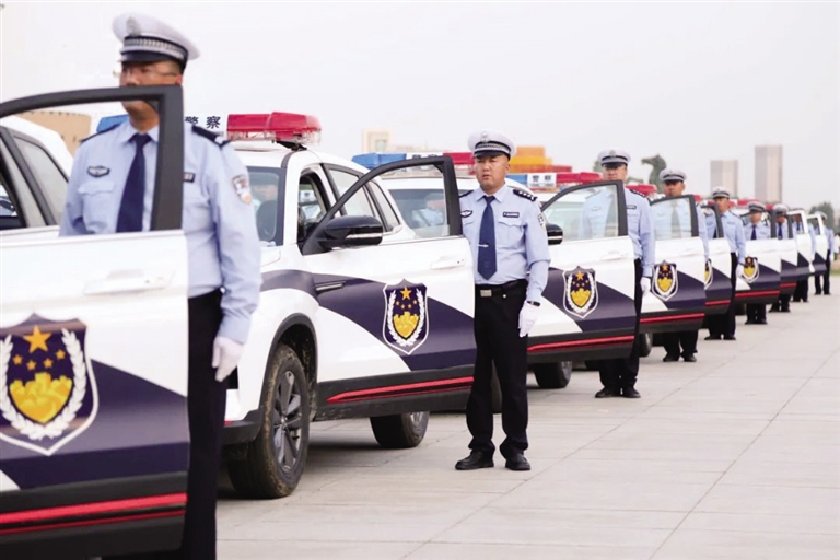 鄂尔多斯市公安机关警用装备配发仪式日前在康巴什区举行。本次共配发执勤执法车辆298辆、执法记录仪1700部,全部投入到基层一线使用。配发仪式后,随着“配发战车出征”的命令,全体民警迅速登车,奔赴全市道路交通安全管理一线。