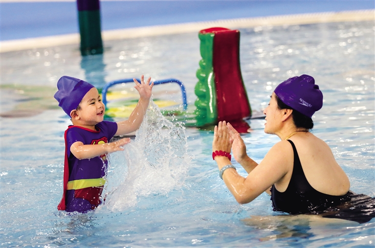 7月7日,市民在呼和浩特体育中心游泳、滑冰,乐享清凉。当日正值二十四节气中的小暑,呼和浩特烧烤模式火力全开。很多市民选择游泳池、冰场等场所寻觅清凉。
