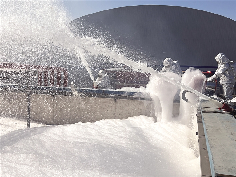 “甲醇泄漏!”“1人中毒!”近日,神华乌海能源西来峰甲醇厂上空,突然响起了急促的警报声,企业迅速启动应急预案,企业专职队立即疏散人员、拨打119报警……7月7日,记者从乌海市消防救援支队了解到,这险象环生的一幕是乌海市危险化学品重大危险源甲醇泄漏事故应急演练现场,演练以假设西来峰甲醇厂成品罐区精甲醇泄漏,1人中毒为背景。企业迅速启动厂级应急处置预案,政府立即启动应急预案,应急管理、消防、公安、医疗、环检等相关联动单位和化工专家第一时间赶赴现场,展开灭火救援、抢救伤员、紧急疏散、环境监测等工作。期间,消防救援队伍严格按照预案设定,一次性调集足够力量赶赴现场,展开侦察检测、医疗救护、环境监测、喷淋稀释、冷却抑爆、抢险堵漏、总攻灭火等科目演练,取得了预期效果。文·摄影/北方新报正北方网记者 张巧珍
