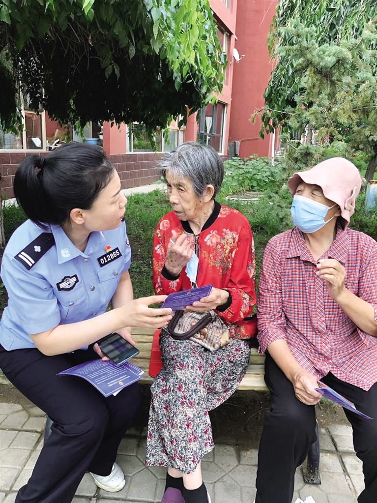 7月6日,呼和浩特市金桥派出所民警深入辖区进行防范养老诈骗知识宣传。在赛罕区税苑小区,民警通过讲解案例和分发宣传资料,提醒老年人不听信、不参与“保健品推销”“养老投资”“代办养老保险”等骗局,遇到可疑情况要多和子女商量,或及时拨打110报警。现场的老人们说,“这样的宣传及时有用,防止我们上当受骗。”