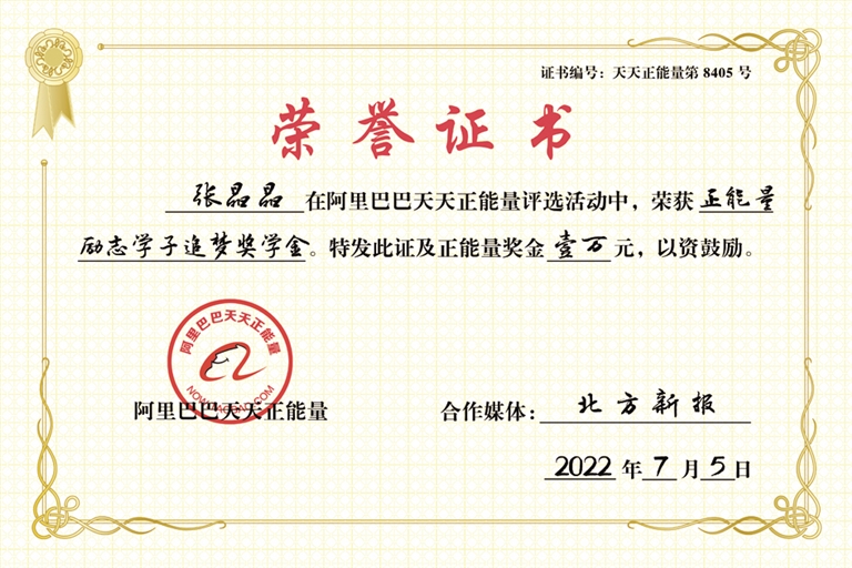 致力于挖掘正能量故事的阿里巴巴“天天正能量”通过本报得知张晶晶的故事后深受感动,决定联合本报为张晶晶颁发正能量励志学子追梦奖学金1万元。阿里巴巴“天天正能量”在颁奖词中写道:她爱文学,爱跳舞,但家庭的困境让她无法翩然起舞。对别人来说轻轻松松的事儿,对他们来说却是难过的关。辛苦吗?委屈吗?孤独吗?郁闷吗?打碎怀疑,打碎桎梏,她把所有凝重的障碍,都化作前进的动力。这扎扎实实的第一步,开启的是她华丽绚烂的人生之舞!去吧,孩子,张开双臂,尽情舞蹈,草原上,会升起你闪光的梦想!