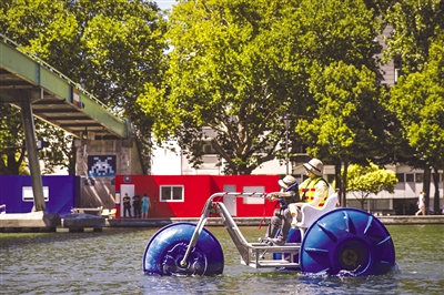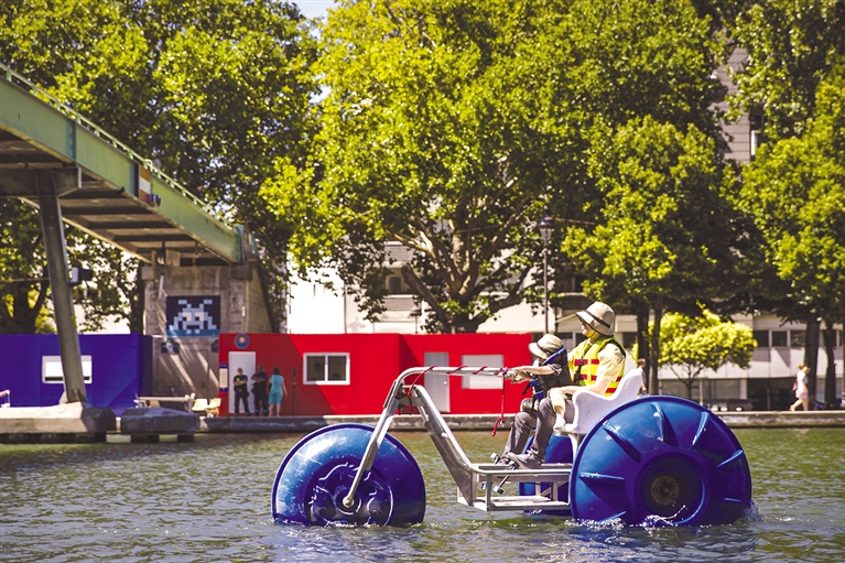 7月11日,在法国巴黎沙滩节期间,人们在维莱特内湖上休闲。今年的巴黎沙滩节于7月9日至8月21日举行。巴黎沙滩节自2002年开始举办,是巴黎一年一度的休闲消夏活动。 (据新华社报道)