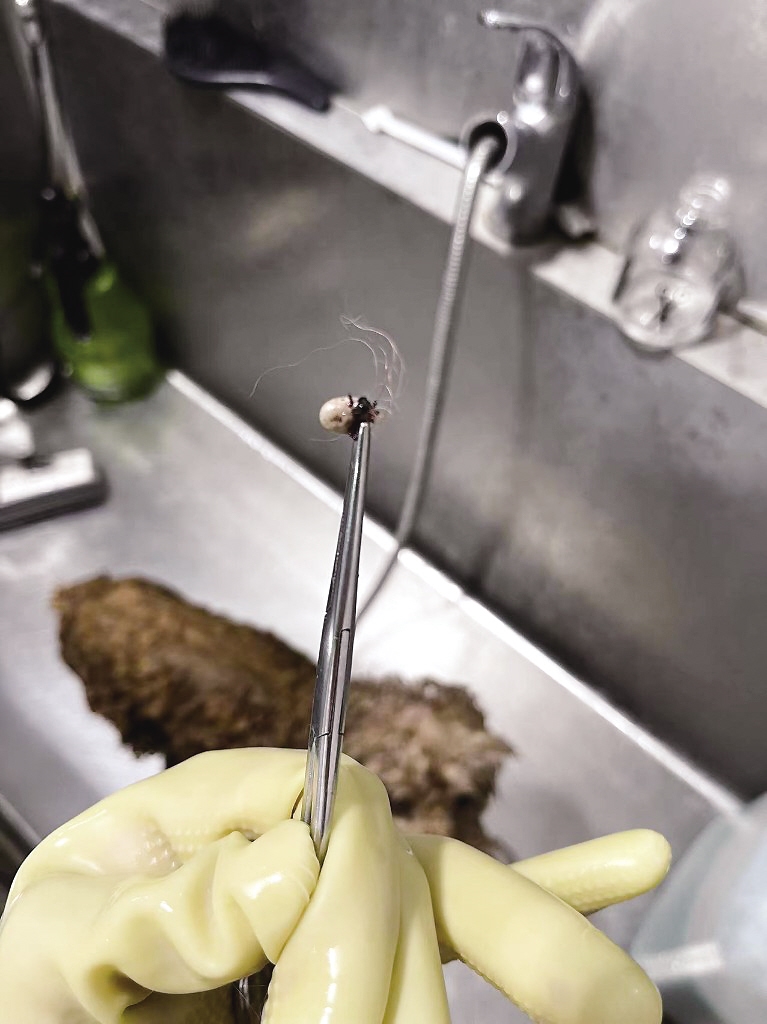 连日来,记者走访多家宠物医院得知,近来是蜱虫的活跃期,不时有宠物前来驱虫。这些蜱虫藏在宠物的毛发里面,医生需要将蜱虫麻醉后才可以完整取出。“进入夏季后,宠物感染蜱虫的现象比较多,近日就成功处理过两起。市民带宠物外出时一定要注意草地、森林、水边,这些是蜱虫多发的地方。一旦被蜱虫叮咬,千万不要徒手往出揪,因为这样会迫使蜱虫往皮肤里钻,一旦头断在里面还会增加患病风险。”呼和浩特市百维动物医院负责人赵文双告诉记者。