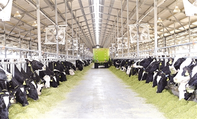 在这里,全智能无人挤奶机器人、饲喂机器人、推料机器人等各司其职;牧场运营管理系统和物联网技术结合,全牧场、全天候监控牧场各个环节,并对牛舍的温度、湿度、光照等自动调节,让奶牛的生活更舒适;智慧牧场系统可以实时掌握奶牛的产奶量、采食量、运动量及健康情况,对奶牛全生命周期进行无微不至的关怀。