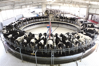在呼伦贝尔,伊利绿色智能高端有机乳制品示范项目首批生产线竣工投产,6座牧场已经挤奶投产运营,2座牧场也已进牛;在兴安盟,仅九个月就完成四座总规模7.5万头的牧场群和一座加工厂的开工建设;在巴彦淖尔目前已建成16座规模化示范牧场;在通辽目前已有2座万头牧场全部进牛……