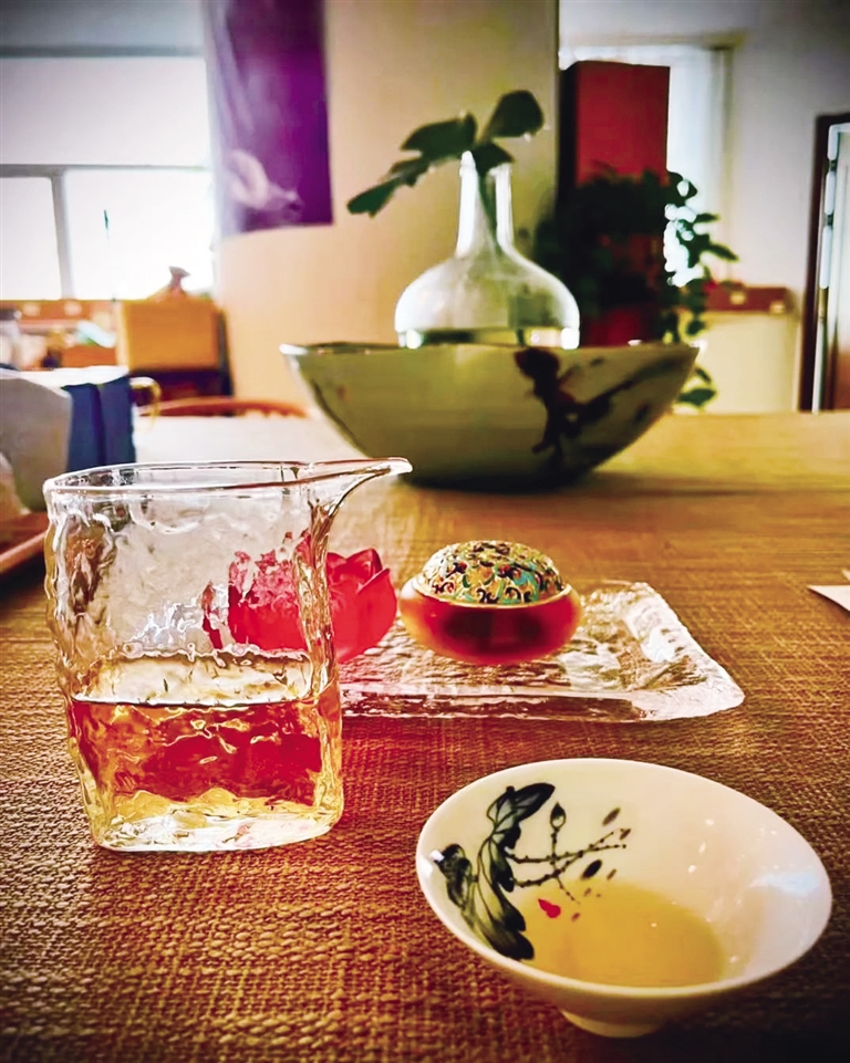 酷暑蒸腾、热浪滚滚的日子里,寻到一间充满古意的茶室,室内有水帘从瓦上低落、锦鲤嬉戏于流觞曲水的水道,将暑气和倥偬暂且隔绝在门窗之外,自成天地。煮一壶清茗、泡一杯茶汤、点一些茶点。或读书、或和家人闲聊,一起偷得浮生半日闲。恰如白居易诗云“散热由心静,凉生为室空”。闲逛中,竟然还发现了茶室角落有一只圈养的羊驼,不怵人,萌萌眼神看着茶客,生活细微的美好,似乎就是在这些不经意的发现之中。