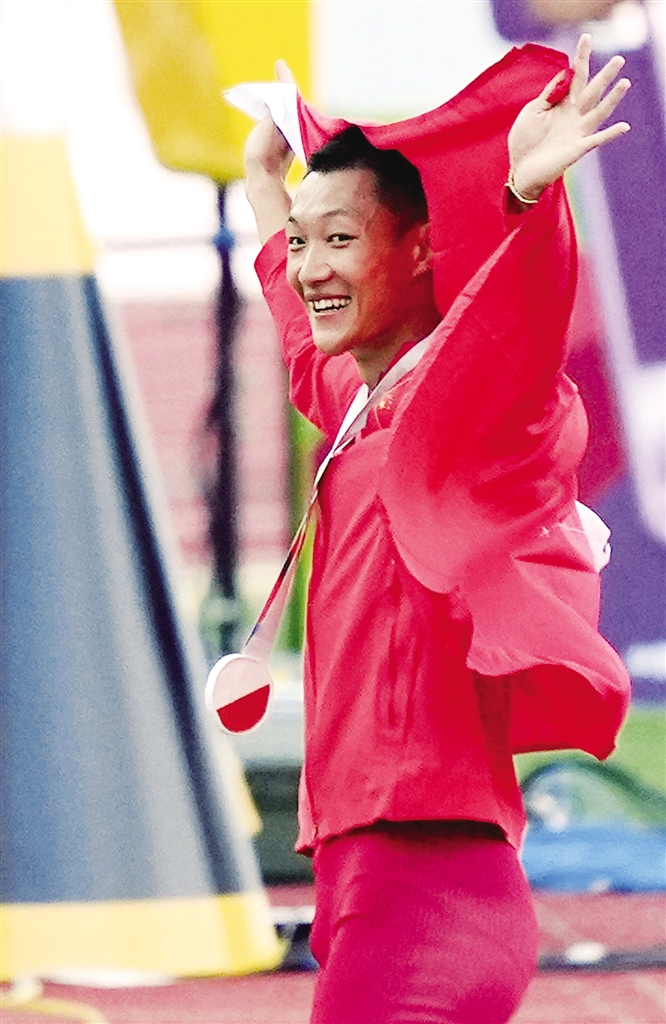 助跑,加速,起跳,一道红色的闪电在海沃德体育场跃起,空中完美的滑行后,王嘉男平稳落地,8米36!北京时间7月17日上午举行的2022年俄勒冈田径世锦赛男子跳远决赛中,中国选手王嘉男凭借这惊天一跳夺冠,成为历史上第一位赢得世锦赛跳远冠军的亚洲选手。(相关报道见12版)