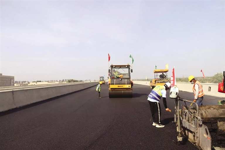 记者日前从赛罕区人民政府了解到,三环路赛罕区段一标段开始沥青摊铺施工作业(如图),预计7月底全部铺设完成,这标志着三环路(赛罕区段)主线又一重大节点工程即将完工。据了解,沥青铺设完成后,路面建设完成95%的工作,后续需要做伸缩缝、智能交通以及道路交通标识标线施划等工作。三环路赛罕区段全长17公里,共分为4个标段,其中高架桥9.8公里、地面连接线5.88公里、永济立交1.32公里,全线设兴安、科尔沁、永济立交3座立交桥。目前,各标段正在紧张有序施工中。文·摄影/北方新报正北方网记者 郝儒冰 通讯员 田瑞峰