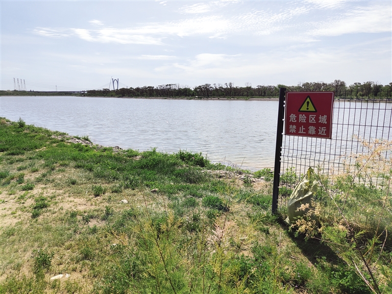7月15日上午,记者怀着悲痛、惋惜的心情来到这对母女溺亡的事发地点,看到附近沿河有一段长约1公里的护栏向东侧延伸。记者顺着护栏往东走,发现每隔百米就立着一块警示牌,或写着“危险区域,禁止靠近”,或写着“禁止垂钓、嬉水”。知情人向记者表示,这段长达1公里的护栏所拦截之处,是每年溺亡悲剧多发地,水最深处有4~5米。