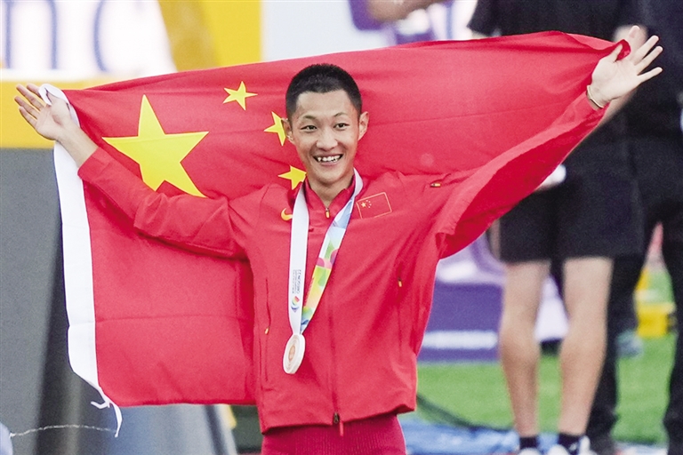 “我起来看了一眼沙坑,估计在8米3左右,不是奖牌就是金牌,我就往前跑,下意识地往前跑。”他赛后回忆当时那激动的一刻时说。