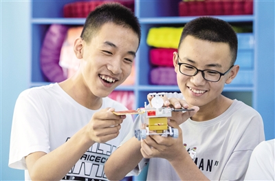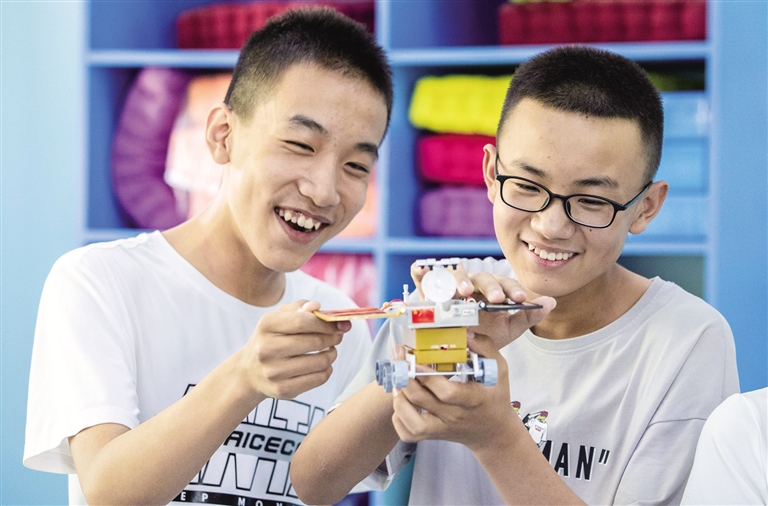 7月19日,呼和浩特市第二十七中学的学生在模拟“月球车”登月。据了解,7月20日是“人类月球日”。当日,该校通过课件讲解、操纵月球车模型等形式,让同学们学习了解太空科普知识,激发他们对浩瀚宇宙的好奇心和求知欲望,感悟宇宙探索的深层含义。