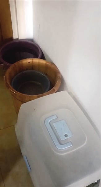 7月18日下午,记者来到学府花园小区。记者发现,蒙地雅小区位于学府花园小区内,与学府花园共用绿地和出入口,但分属两个物业管理。在蒙地雅小区C5号楼六楼的岳先生家,客厅、厨房、洗手间的地上摆满了塑料盆、塑料瓶,里面接满了水。据岳先生介绍,他在蒙地雅小区住了十几年了,住进来没几年,夏秋季用水就成了问题。只有零时至早上6时家里才来水,大家洗澡、洗衣服也只能集中在这个时间段,生活节奏被彻底打乱。为此,蒙地雅小区五楼六楼的居民没少向有关部门反映,但问题都没有得到解决。