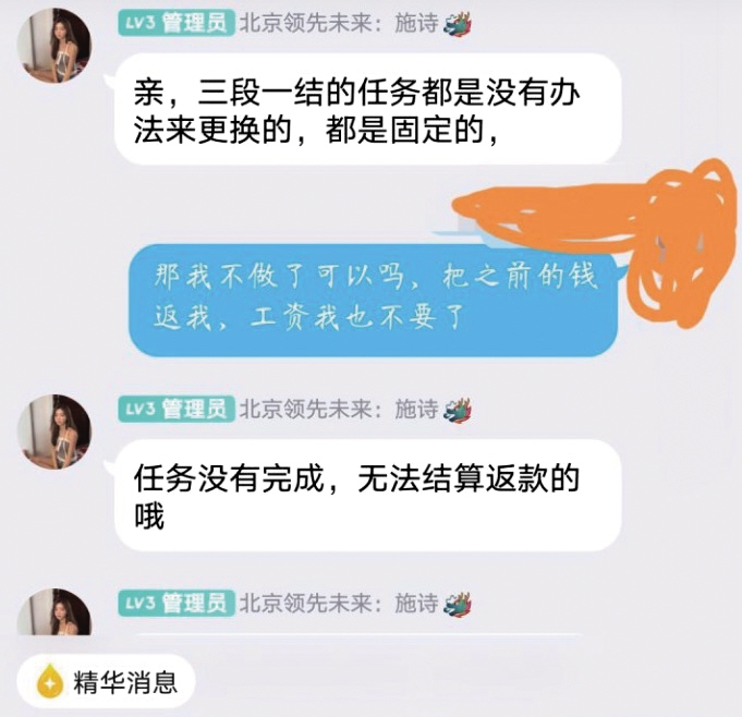 “第一天每个任务是几十元的报名费,第二天费用高了很多,第一个要369元,下一个是333元。对方说报名费越高工资也越高,我可能是有点昏头了,就又交了钱。”正当语星盘算着,三单全部完成可以收到返款加工资一千多元时,对方称第三单报名费要1688元。