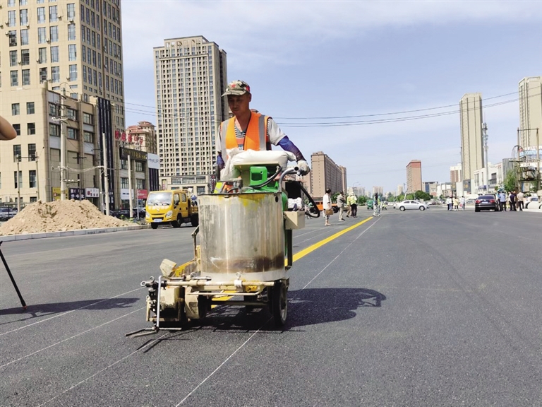 7月25日,记者在呼和浩特市包头大街(锡林郭勒南路-双树西巷段)看到,施工人员正在施划标线。当日,包头大街(锡林郭勒南路-双树西巷段)断头路经过4天施工,主路正式通车。“目前,这条断头路主路已通车,剩余附属工程正在加紧施工,争取8月1日完工。”呼和浩特市市政建设服务中心项目负责人冯冠宙告诉记者,这条路打通后,周边春光嘉园、秋实璟峯汇等小区居民出行更加便利。