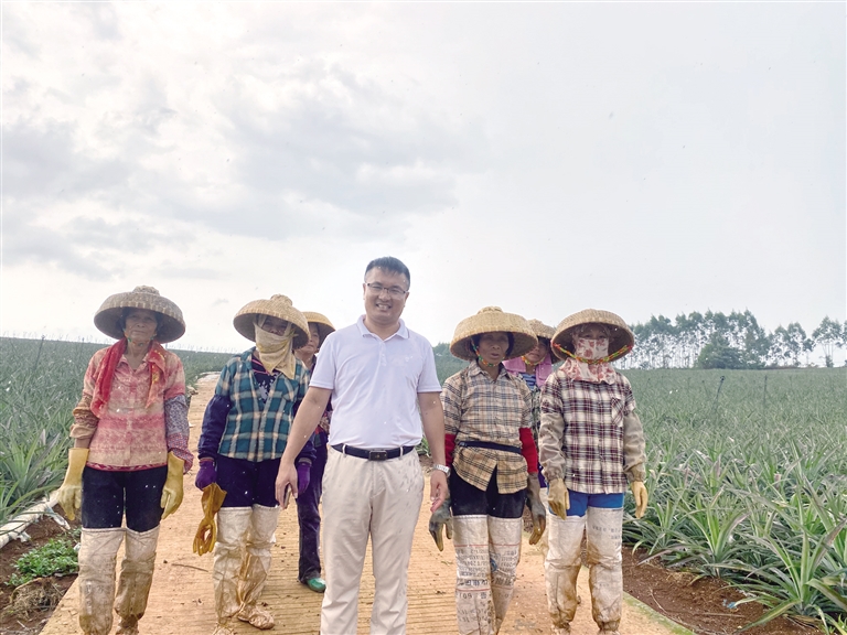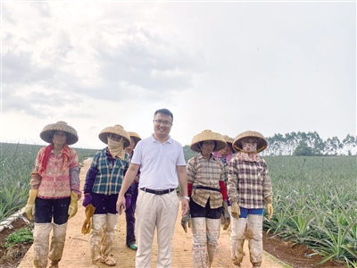 徐闻县珑腾发展有限公司“掌门人”叶青红,也是个菠萝种植达人。2000年高中毕业后,叶青红没有外出打工,而是选择回家务农。二十余年间,叶青红的菠萝种植面积从30多亩跃升到1000多亩,成为当地的种植大户。2017年,叶青红注册成立了徐闻县珑腾发展有限公司,吸纳1000多个农户加盟。