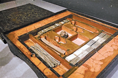 进入秦汉时期,六博的发展达到了巅峰。在湖北云梦睡虎地秦墓中,就出土了两套六博棋具。这两套六博棋具均由木棋局、骨棋子和六根竹箸组成。比较明显的区别,就是其中一套,双方都是大小相等的六枚髹(xiū,用漆涂在器物上)黑漆棋子,双方大小有所区别;而另外一套,只有一方的一大五小六枚棋子,大棋为髹红漆、小棋为髹黑漆。另一方的棋子已经遗失了。