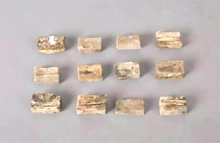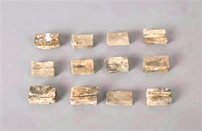 大象牙棋包括黑色大象牙棋和白色大象牙棋各六枚,每枚长 2.9厘米、宽1.7厘米、厚1厘米,无枭棋;灰色小象牙棋每枚长2.9厘米、宽1.7厘米、厚1厘米,小象牙棋又称作“直食棋”,从名称来看,应该是可以直接吃掉对方的棋子,但究竟如何使用,目前还不太明确。木筹包括短筹三十枚和长筹十二枚,短筹长16.4厘米、直径0.3厘米,长筹长2.7厘米、直径0.4厘米。