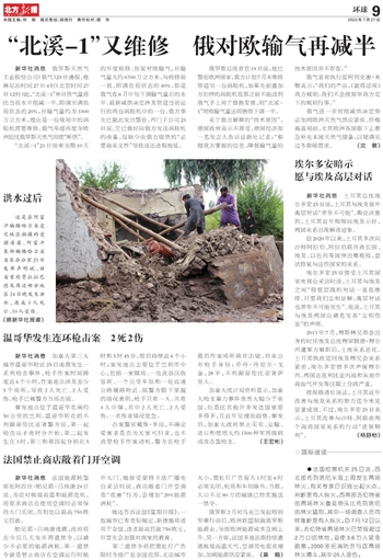 “北溪-1”又维修 俄对欧输气再减半