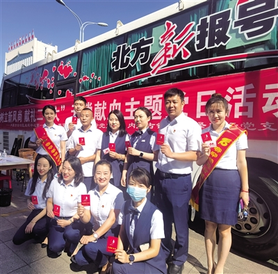 填写登记表、抽血化验、测量血压……7月28日8时30分,呼和浩特市赛罕蒙银村镇银行和内蒙古银行呼和浩特丰泽支行的工作人员依次走上北方新报号采血车,踊跃献血,传递爱心。当日,共献血5700毫升。