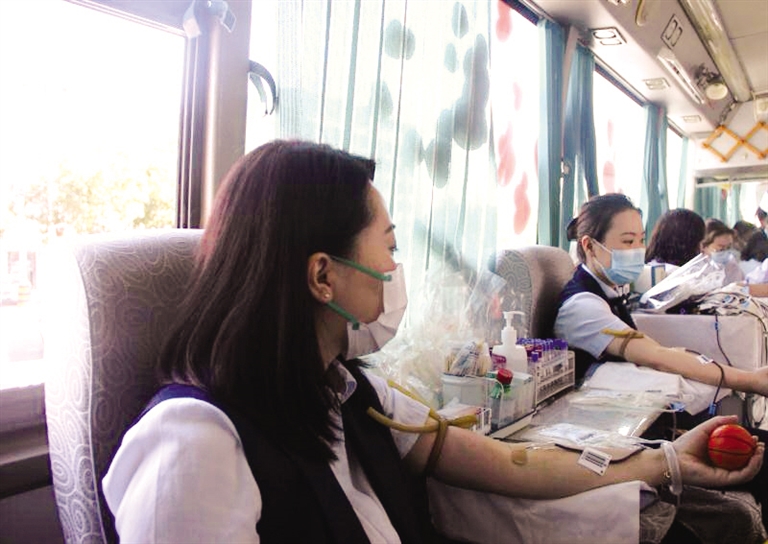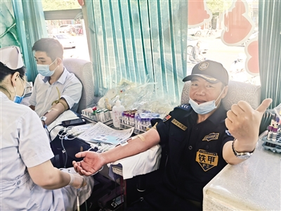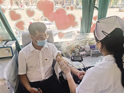 今年55岁的保安于庆山听说要组织献血活动,毫不犹豫报了名。“我当过兵,身体素质非常好,献完血后没什么感觉,我希望可以帮助更多的人。”于庆山献血300毫升。鲜红的血液随着针头缓缓流入血袋,汇聚成生命的希望。记者在活动现场看到,既有首次参与献血的“新人”,也有多次献血的“老人”,他们都希望通过实际行动弘扬奉献精神,传递正能量。“今天我成功献血400毫升,感觉良好,每次献完血我都觉得很光荣。”内蒙古银行呼和浩特丰泽支行的工作人员陈海燕告诉记者,她以前经常献血,以后只要有机会,只要身体允许,她就会一直坚持下去。