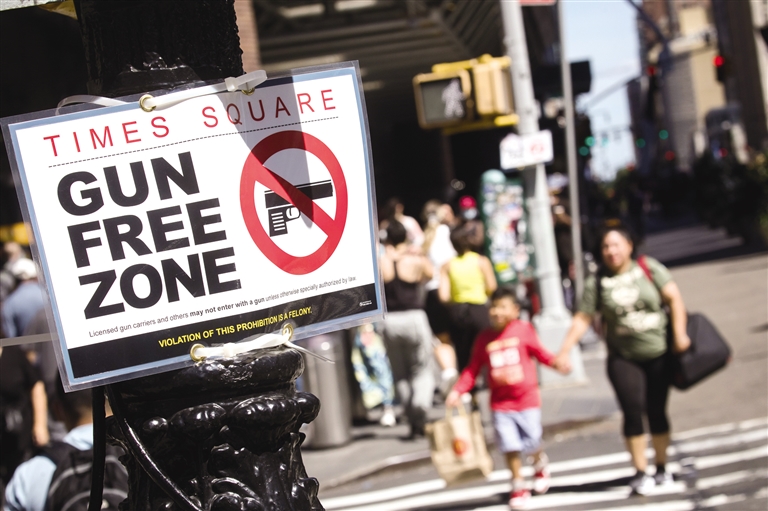 在每年大约5000万人次游客到访、获称“世界最繁忙路口”的纽约时报广场,从9月1日起禁止携枪入内。纽约市政委员会发言人阿德里安娜·亚当斯8月30日说,她期待看到政府采取行动“保护纽约市民和经常光临时报广场的访客”。