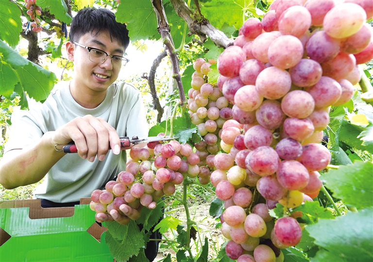 9月12日,河北省晋州市周家庄乡果农在果园采摘葡萄。