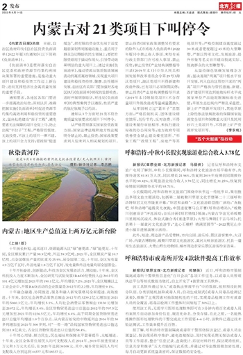 内蒙古:地区生产总值迈上两万亿元新台阶