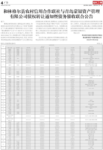 和林格尔县农村信用合作联社与青岛蒙银资产管理 有限公司债权转让通知暨债务催收联合公告