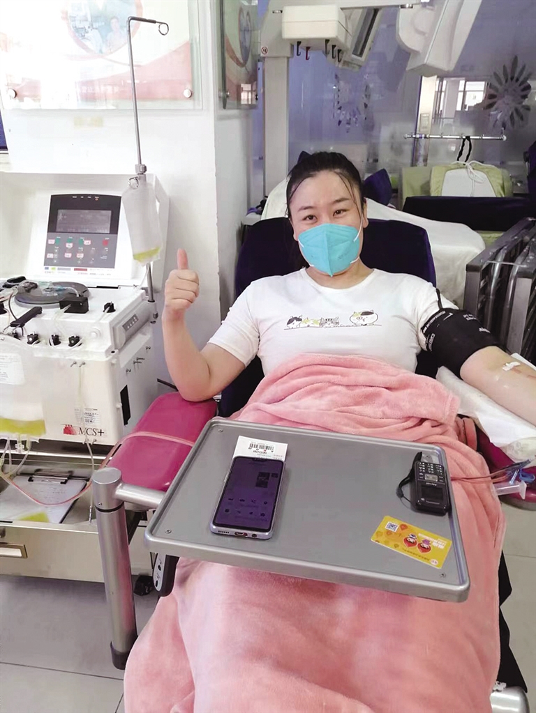 贺永霞是内蒙古均豪物业服务有限责任公司的一名工作人员,从10月4日至今她化身“大白”一直住在单位,为所服务小区居民送菜、收垃圾,给楼道消毒。10月9日得知受疫情影响首府血液库存紧张后,她主动打电话给自治区血液中心表示可以去献血。为了保障安全,当天,自治区血液中心专门安排车辆将贺永霞全程闭环接到血液中心采血。贺永霞捐献了一个治疗量的血小板。截至目前,贺永霞已经坚持无偿献血15年,共献血62次,献血总量达19600毫升。采访中记者了解到,从2020年疫情发生以来,作为一名物业公司一线人员,贺永霞在每次疫情发生后总是出现在抗疫现场。她说:“无论是无偿献血还是抗击疫情,我都希望用自己的微薄力量传递温暖。”