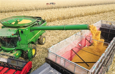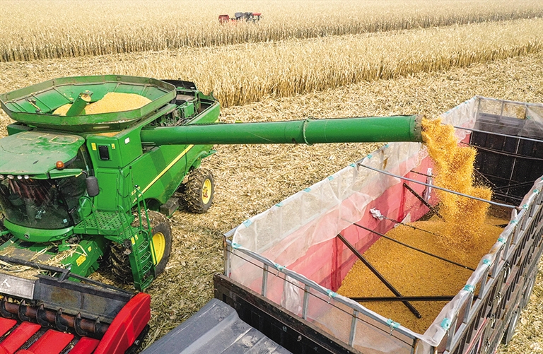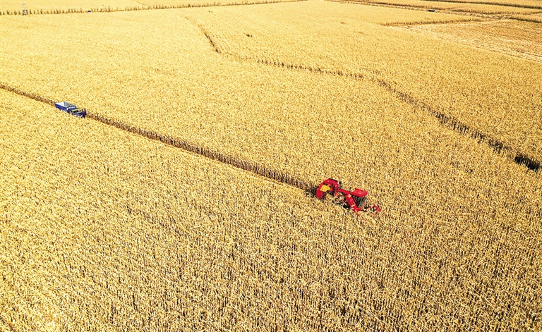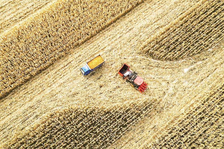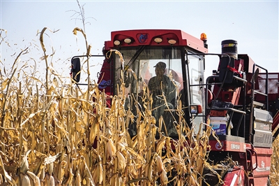 日前,通辽市的千万亩玉米陆续开镰,田间一片丰收景象。内蒙古自治区通辽市地处“玉米黄金种植带”,今年玉米种植面积达1700多万亩。得益于浅埋滴灌、高密度栽培、全程机械化等生产技术,通辽市玉米亩产稳中有升。