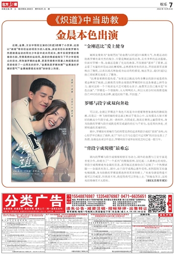 被网友爱称为“金刚芭比”的金晨与《炽道》中飒爽大气、热爱运动的助教罗娜有着天然的契合。尽管是舞蹈演员出身,且有多年的运动基础,但面对罗娜一角,金晨还是做了充足的准备,不仅提前“恶补”了原著,还去看了大量的田径运动比赛视频,去熟悉体育生的状态,开拍前甚至直接练出了腹肌,以求沉浸式体验成为运动员的感觉。她还笑言,是《炽道》让自己彻底真实地爱上了健身。